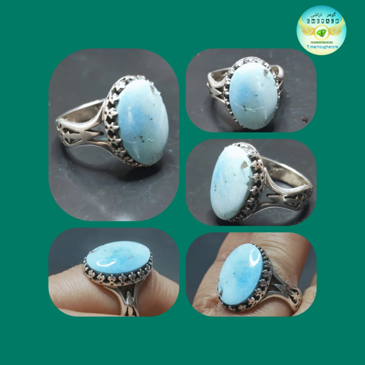 انگشتر فیروزه معدنی نیشابور با رکاب نقره ۹۲۵