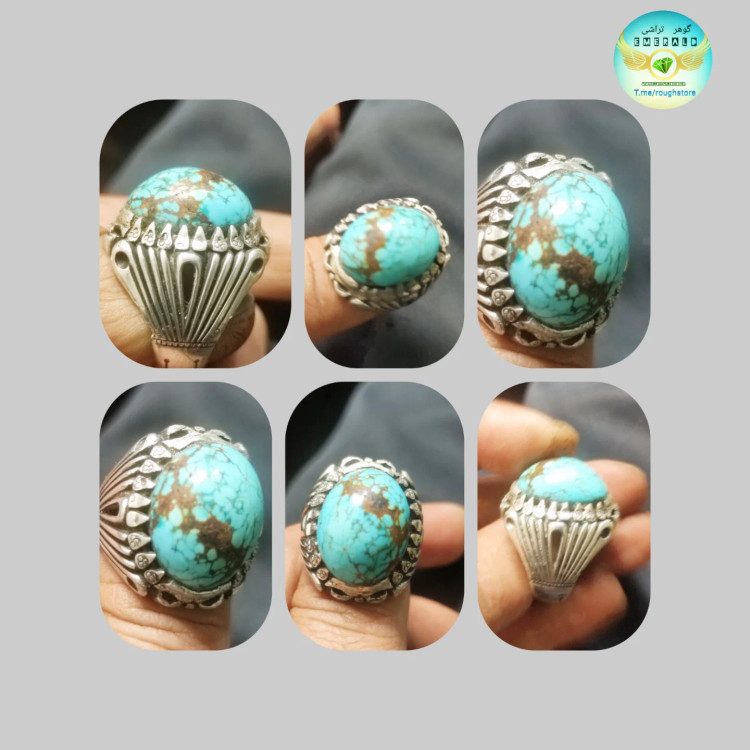 انگشتر فیروزه نیشابور با رکاب نقره ۹۲۵ شیخ احمد گوهر