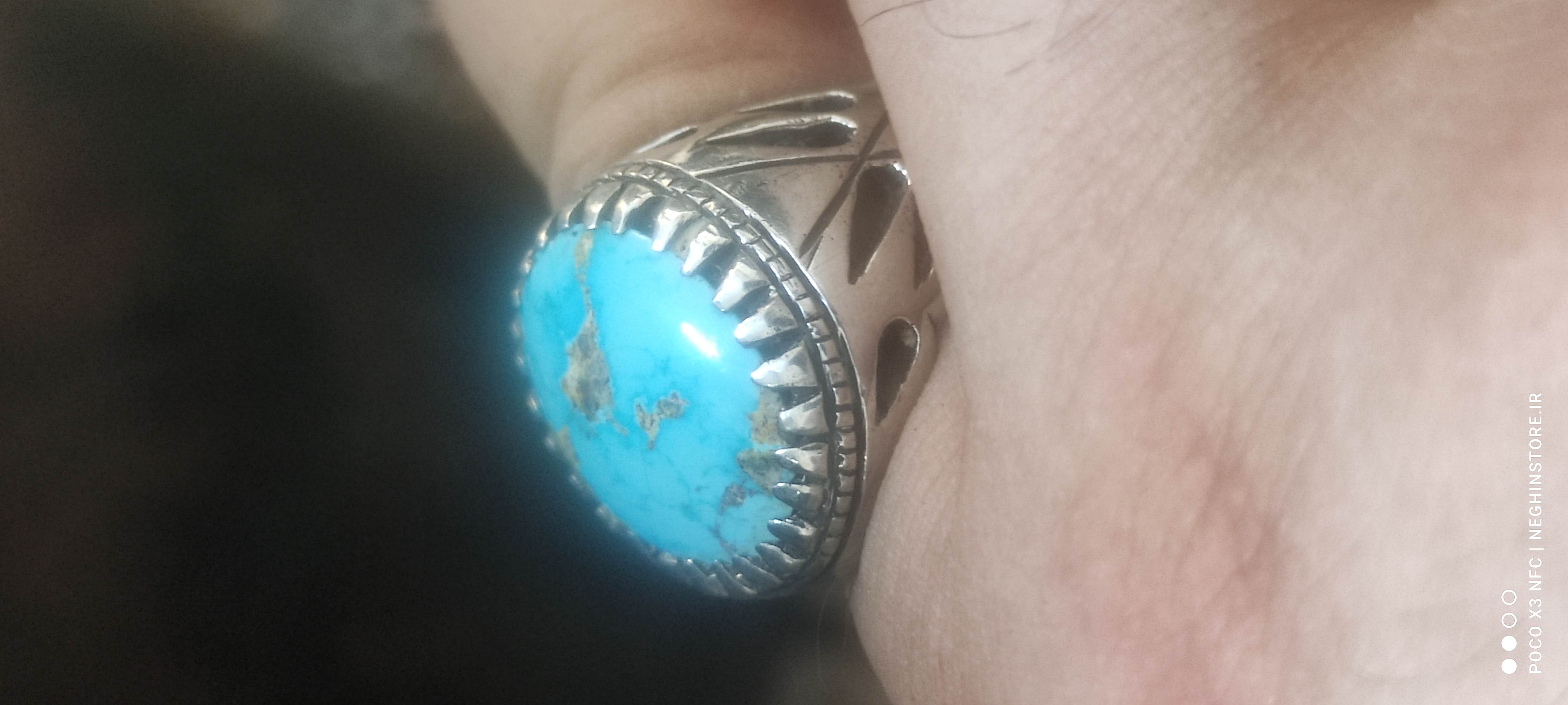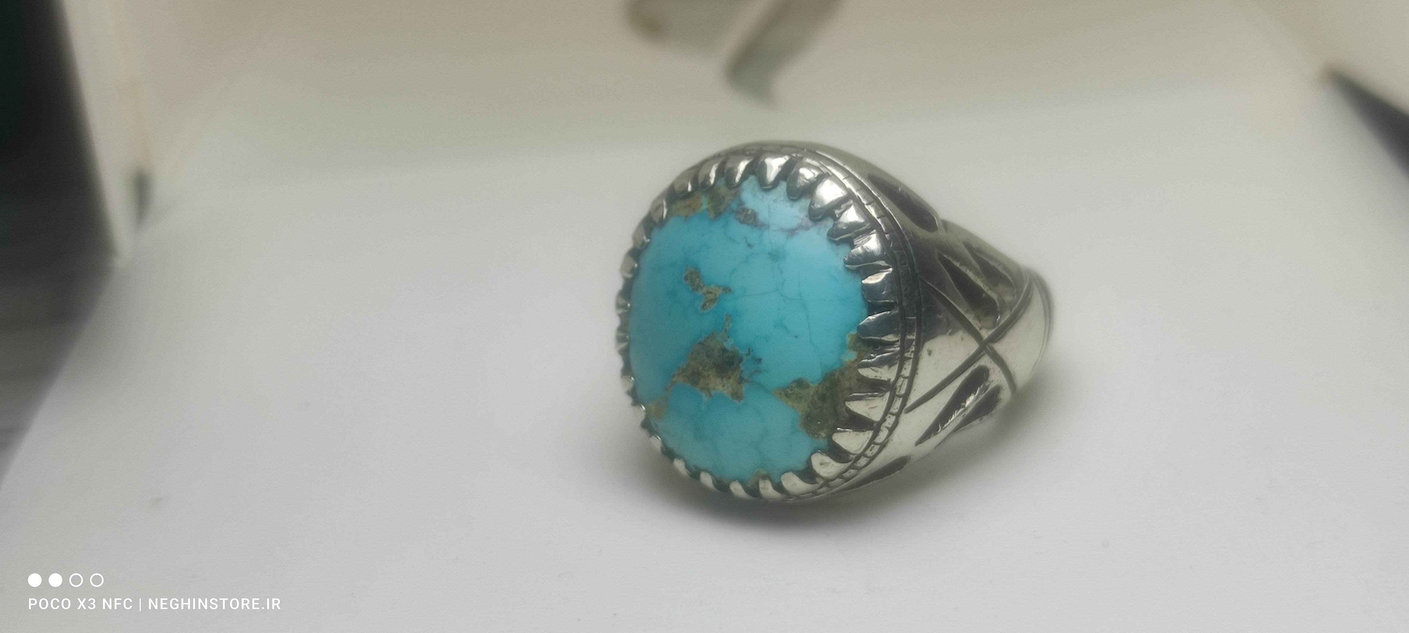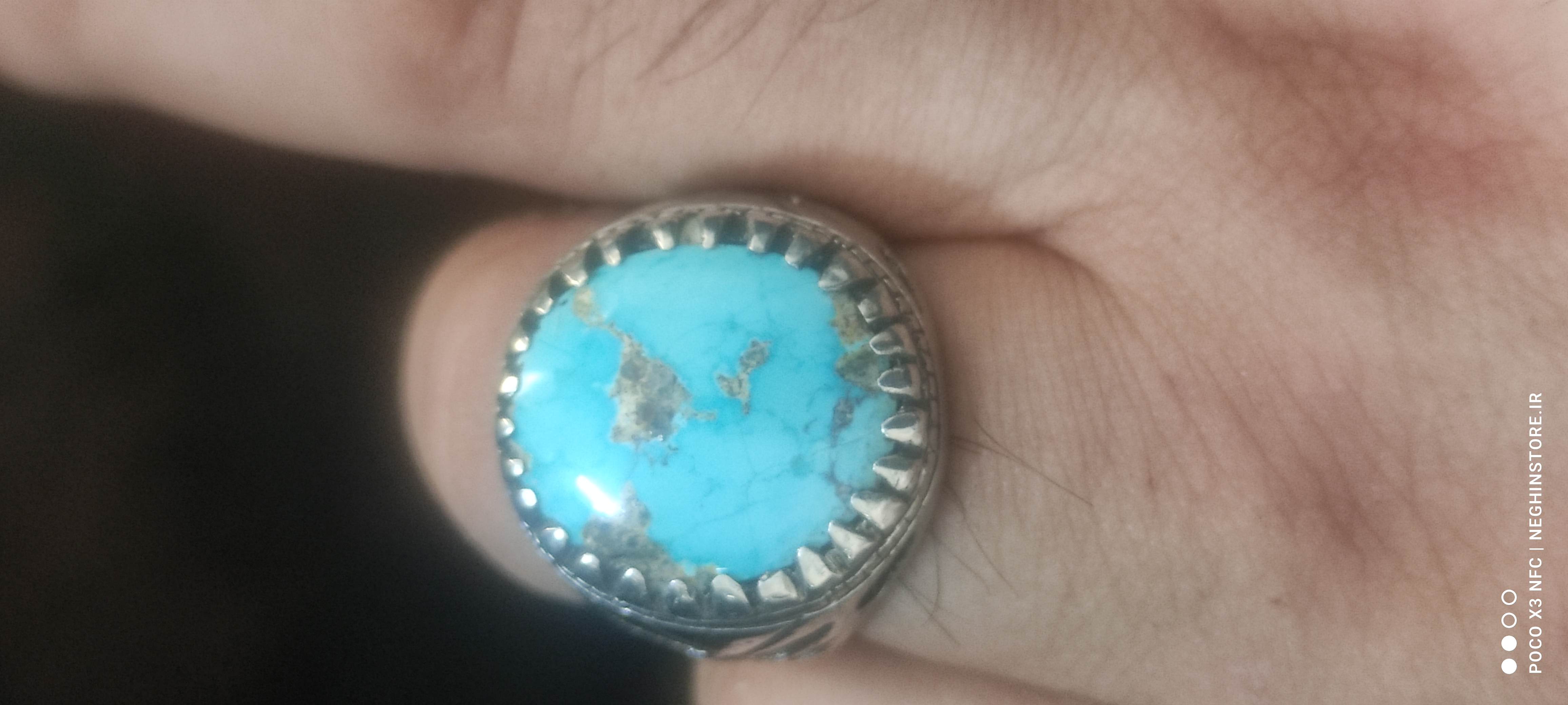 انگشتر مردانه فیروزه معدنی نیشابور با رکاب نقره925